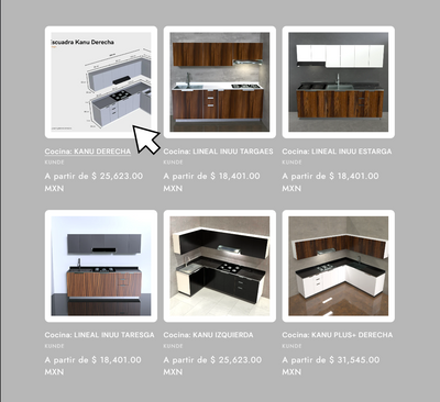 Considera tu Presupuesto, y después ve al catálogo de "Cocinas", ahí escoge un modelo, según el plano y el rango de precio que más se adapte y da click.
