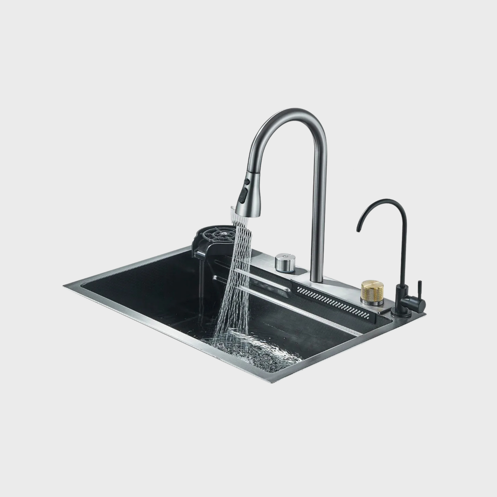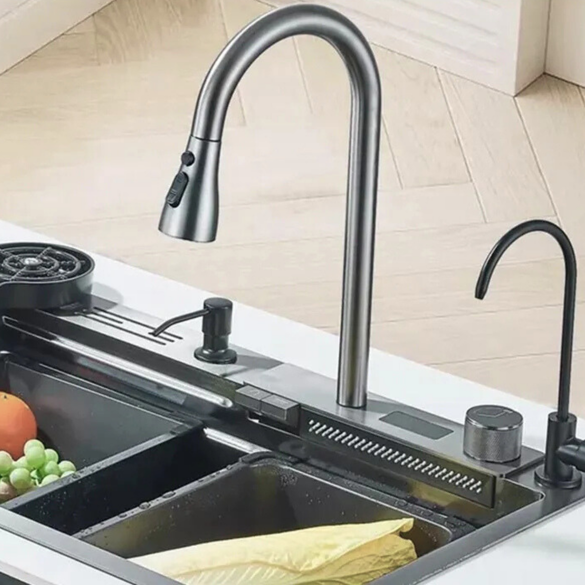 Tarja Plus de Acero inoxidable con grifo extraíble color negro gris oxford.